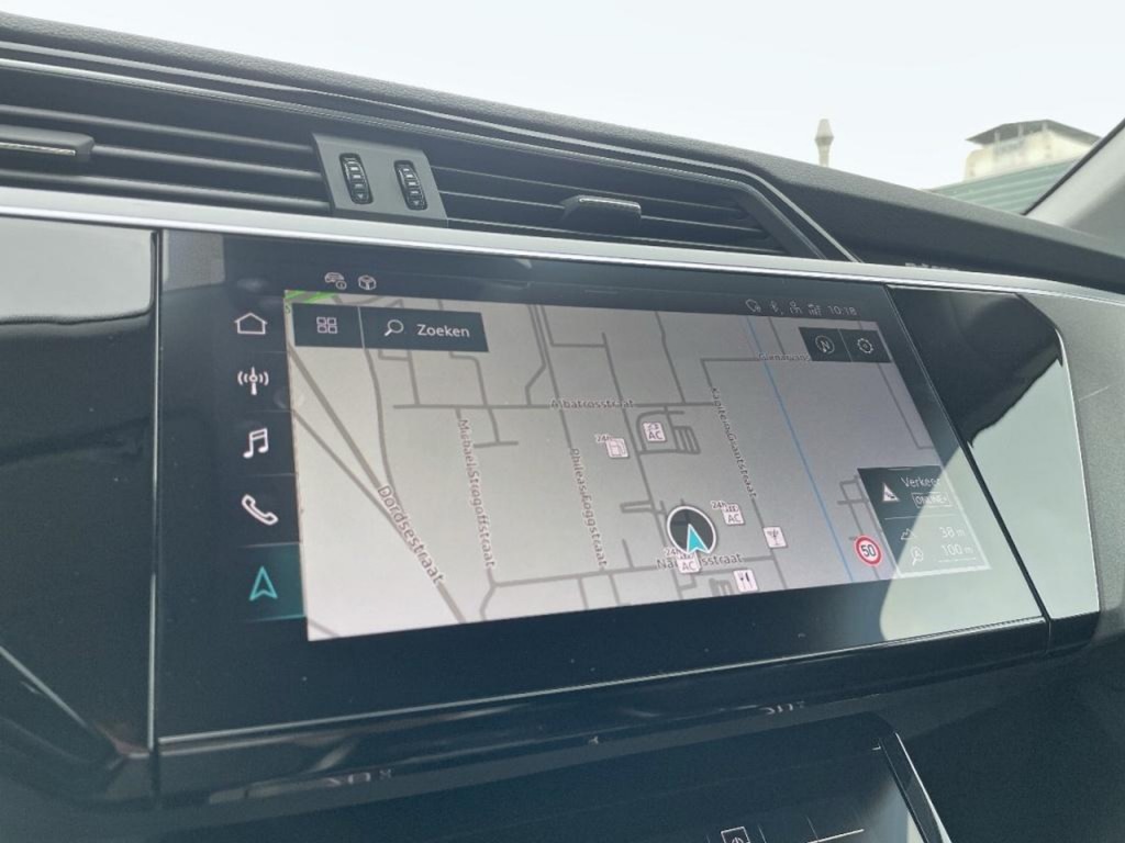 De e-tron 50 heeft een praktische actieradius van ongeveer 300 kilometer, afhankelijk van rijstijl en omstandigheden. Opladen kan via een snellader tot 120 kW, waarmee je van 10 tot 80 procent oplaadt in slechts 30 minuten. Thuisladen kan met 11 kW, waarmee de accu binnen 6 uur weer volledig vol is.